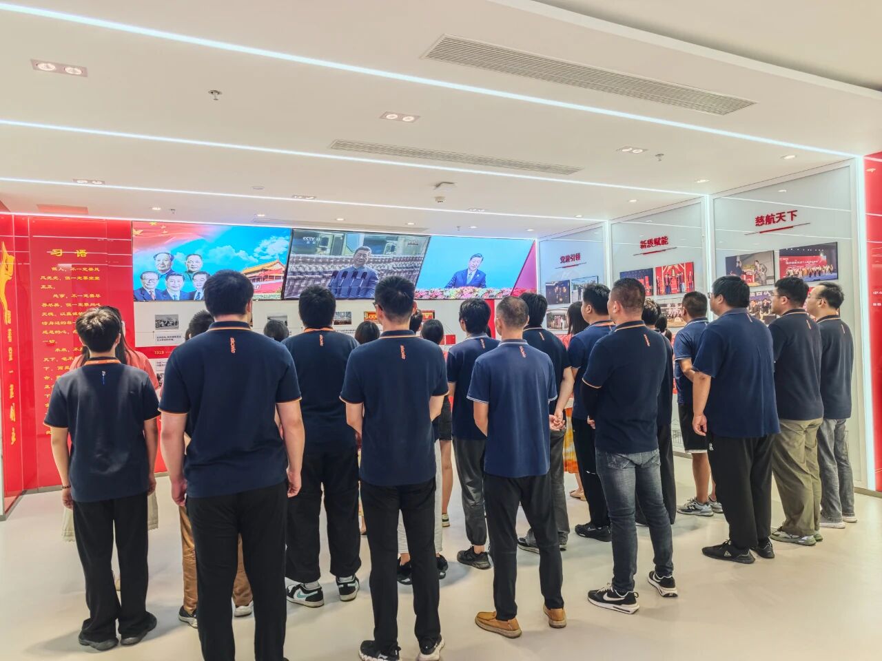 全体党员及青年干部齐聚党建馆,怀着崇敬与激动的心情共同观看阅兵盛况。整齐威武的受阅方阵、铿锵有力的步伐、自主研发的先进装备,全面展现了我国强大的国防实力与和平发展的坚定信念,令在场每一位党员和青年干部倍感震撼与自豪。