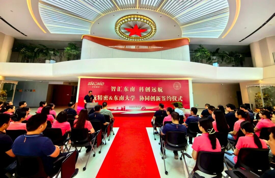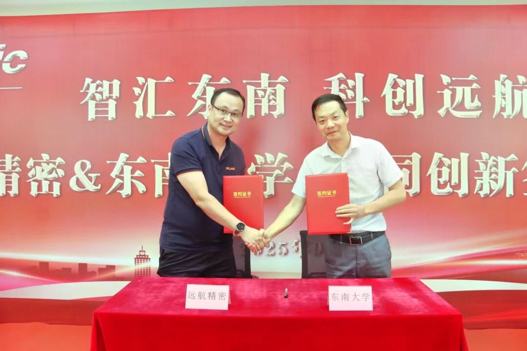 在这生机盎然的美好时节,大家齐聚一堂,共同见证“智汇东南•科创远航”——远航精密与东南大学协同创新签约仪式的隆重举行。此次活动不仅是校企双方共谋发展、深化合作的重要里程碑,更是科技创新赋能产业升级的生动实践。一纸之约,不仅记录了双方携手同行的庄严时刻,更承载了共同迈向科技创新未来的坚定承诺。本次合作协议的签署,标志着远航精密与东南大学的战略合作步入全方位、多层次、立体化的新阶段,必将为校企协同创新和产业高质量发展注入强劲动力。