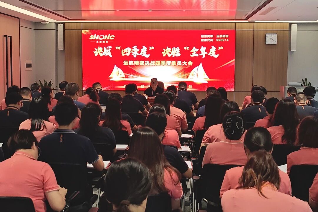 10月10日下午,远航精密决战四季度动员大会顺利召开,会议由董事长周林峰主持,各事业部、中心主要负责人及骨干人员参加会议。