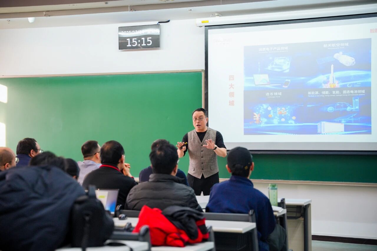 董事长以“胸怀报国智创远航——从产业报国到赋能行业、赋能社会的远航之路”为题进行讲授。他结合企业30年发展历程,系统阐述了从实业深耕到布局新质生产力的实践路径与思考,并向北大青年学子发出共赴“远航”的立业邀请。